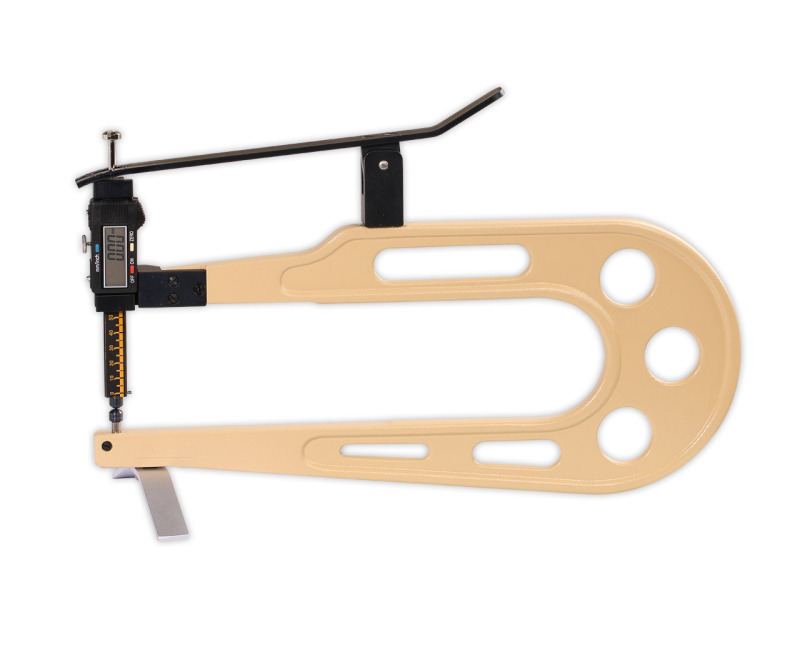 Mit einer Ausladung von 300 mm ermöglicht das Gerät stabile und kontrollierte Messungen über den gesamten Messbereich von 0–50 mm bei einer Auflösung von 0,01 mm, auch bei großen oder schwer handhabbaren Proben.